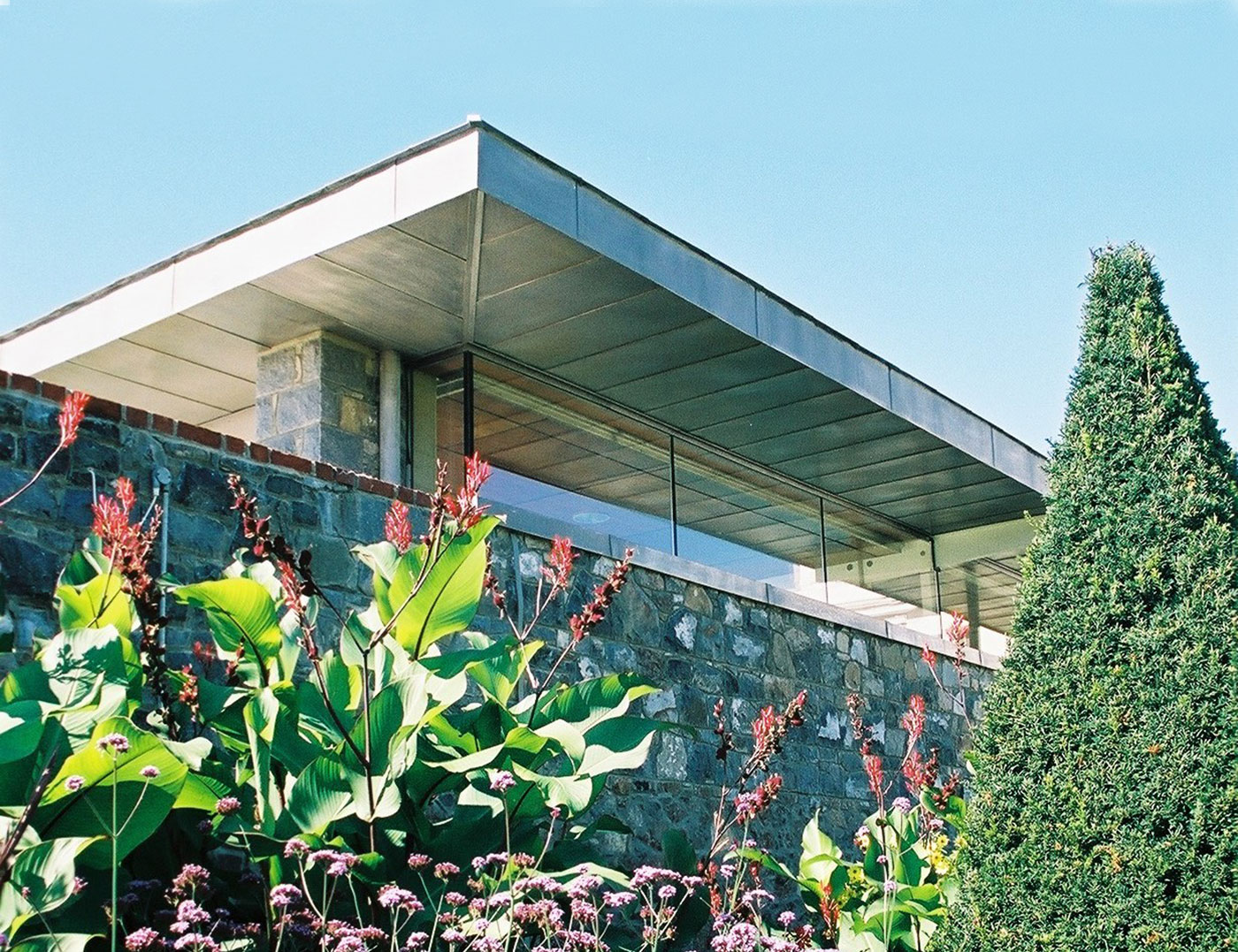 The development is an extension to a Grade II listed building, however is a modern structure using specially designed steelwork to allow a slim line stainless steel clad roof to sail over existing granite garden walls, infilled between with silicone jointed structural glazing.